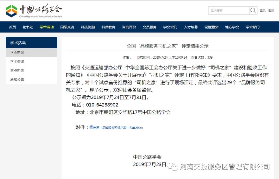 安陽服務(wù)區(qū)“司機之家”被評為2019年全國“品牌服務(wù)司機之家”
