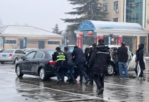 1月21日,洛陽服務區在除雪保通工作中幫助司乘推車 張鈺 攝