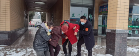 1月22日上午,三門峽服務區黨員志愿者幫扶老人下臺階 盧睿 攝