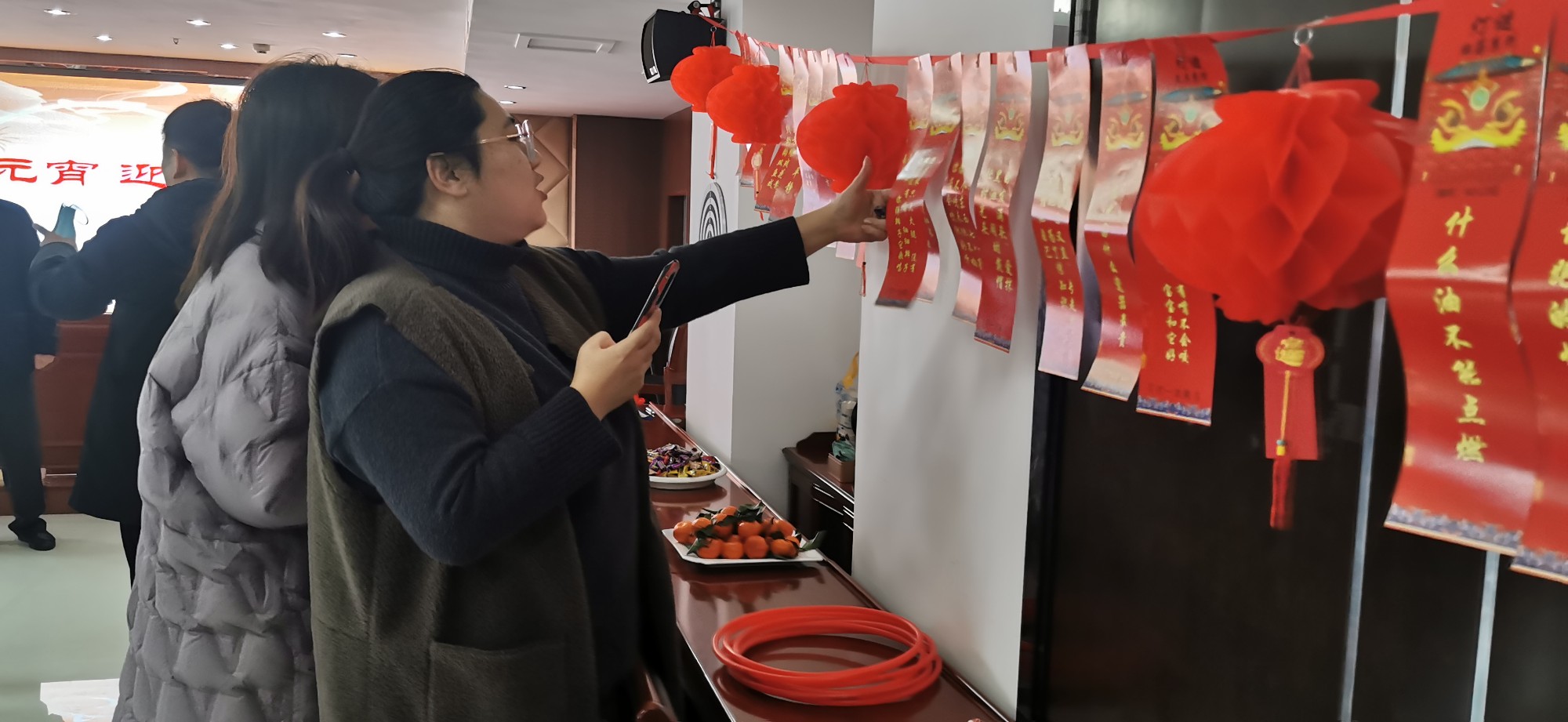 公司本部:認(rèn)真組織開展了“慶冬奧、迎元宵”有獎(jiǎng)猜燈謎活動(dòng)。公司走廊里掛滿了精心準(zhǔn)備的200條燈謎,涵蓋法律、文學(xué)、天文、地理、歷史等多方面知識(shí),豐富多彩,妙趣橫生。一個(gè)個(gè)寫滿燈謎的紅燈籠吸引著公司員工,大家有的冥思苦想,有的猜出謎底喜不自禁,也有的因久久想不出謎底三五成群一起討論,場(chǎng)面甚是壯觀。200條燈謎在短短1個(gè)小時(shí)內(nèi)全部被破解,只要猜對(duì)謎語,就可以領(lǐng)取獎(jiǎng)品一份。大家紛紛表示,猜燈謎活動(dòng)很有意義,活動(dòng)獎(jiǎng)品也很實(shí)用,讓職工度過了一個(gè)安樂、祥和的元宵佳節(jié),希望以后多舉辦這樣的傳統(tǒng)文化活動(dòng)。豐富職工工作生活。
