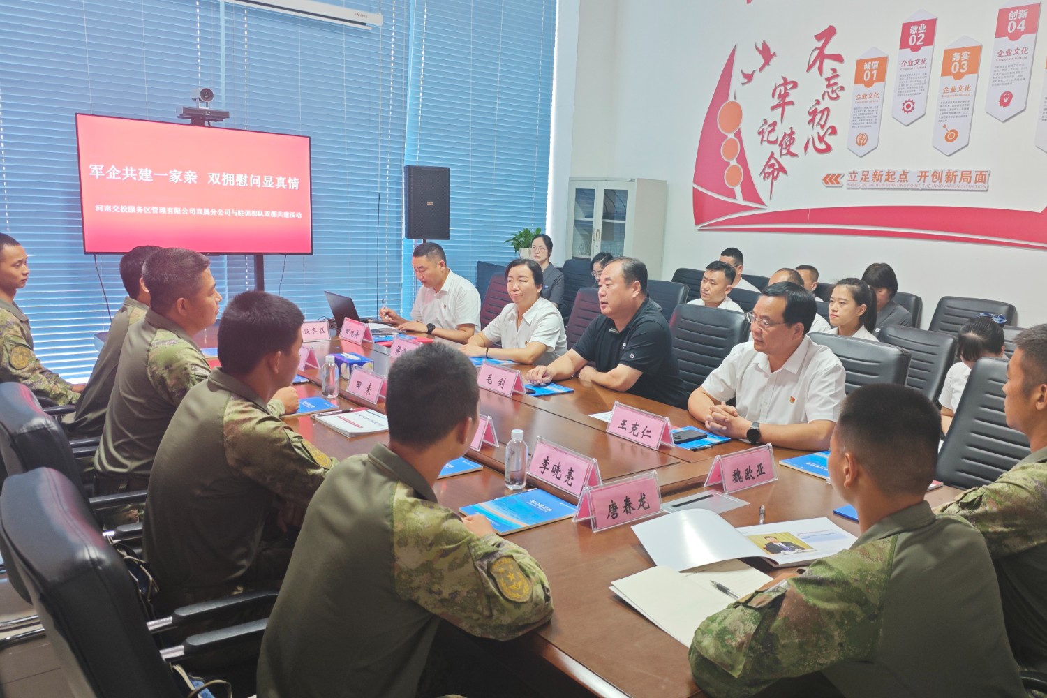 直屬分公司:與解放軍某駐訓(xùn)連隊(duì)支部在邢集駐訓(xùn)基地開展“軍企共建一家親 雙擁慰問顯真情”黨建共建活動(dòng),向長期奮戰(zhàn)在一線的部隊(duì)官兵們致以節(jié)日祝福和誠摯問候并送上礦泉水等慰問品。雙方代表分別作微黨課和個(gè)人成長故事分享、互贈(zèng)黨員教育光盤、書籍等,駐訓(xùn)連隊(duì)參觀了服務(wù)區(qū)黨員示范商戶、黨員責(zé)任區(qū)、6S標(biāo)準(zhǔn)化廚房等區(qū)域,聽取了信陽服務(wù)區(qū)黨支部創(chuàng)建先進(jìn)工作經(jīng)驗(yàn)和優(yōu)秀做法。隨后,召開座談會(huì),圍繞軍企雙擁共建與駐訓(xùn)連隊(duì)支部官兵進(jìn)行深入交流,直屬分公司表示將繼續(xù)發(fā)揚(yáng)擁軍優(yōu)屬的優(yōu)良傳統(tǒng),為官兵辦實(shí)事、解難題,不斷深化軍企軍民團(tuán)結(jié)情誼,促進(jìn)軍企共建工作邁上新臺(tái)階。