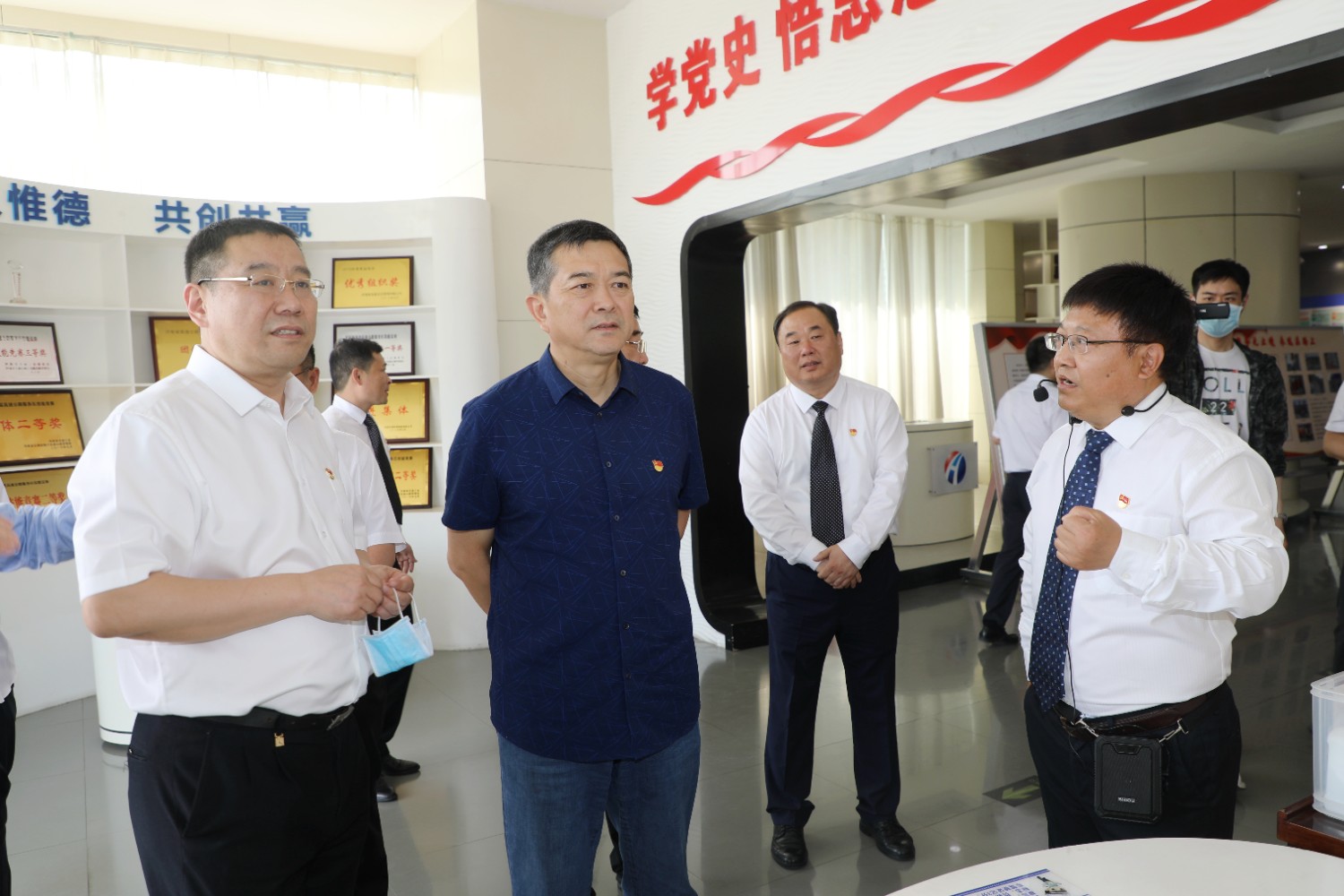 黨課活動開始前,程日盛書記一行還專程參觀了“河南交投消費扶貧館”及直播間,充分肯定了公司消費扶貧、五一期間保通保暢、生產經營等工作取得的成績;并查看了直屬分公司黨委黨建資料、采購配送中心黨支部黨史學習教育相關資料,聽取了聯系點支部黨史學習教育的工作報告,聆聽了紅色家書誦讀,對公司基層黨支部建設工作表示肯定。