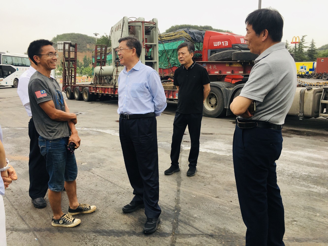 在近兩個小時的調研中,吳孔軍副廳長一行實地查看了服務區公共廣場、公共衛生間、司機之家規劃區域、便利店等,隨機同5名大貨車司機親切交流,詳細了解了他們在高速公路出行過程中的需求。