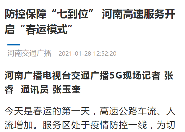 人民日報、河南交通廣播:新春走基層,春運一線 進入高速公路服務區,你需要這樣做!
