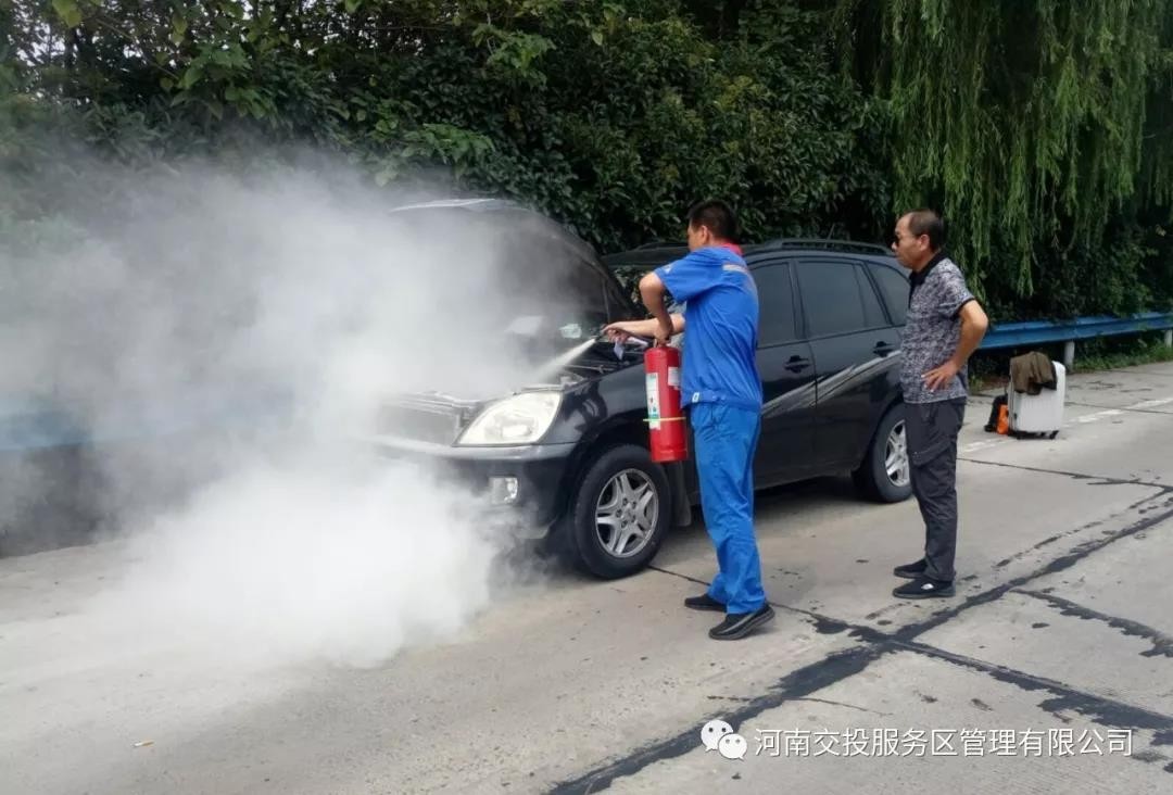 小車自燃 漯河服務(wù)區(qū)工作人員化身“消防員”緊急施救