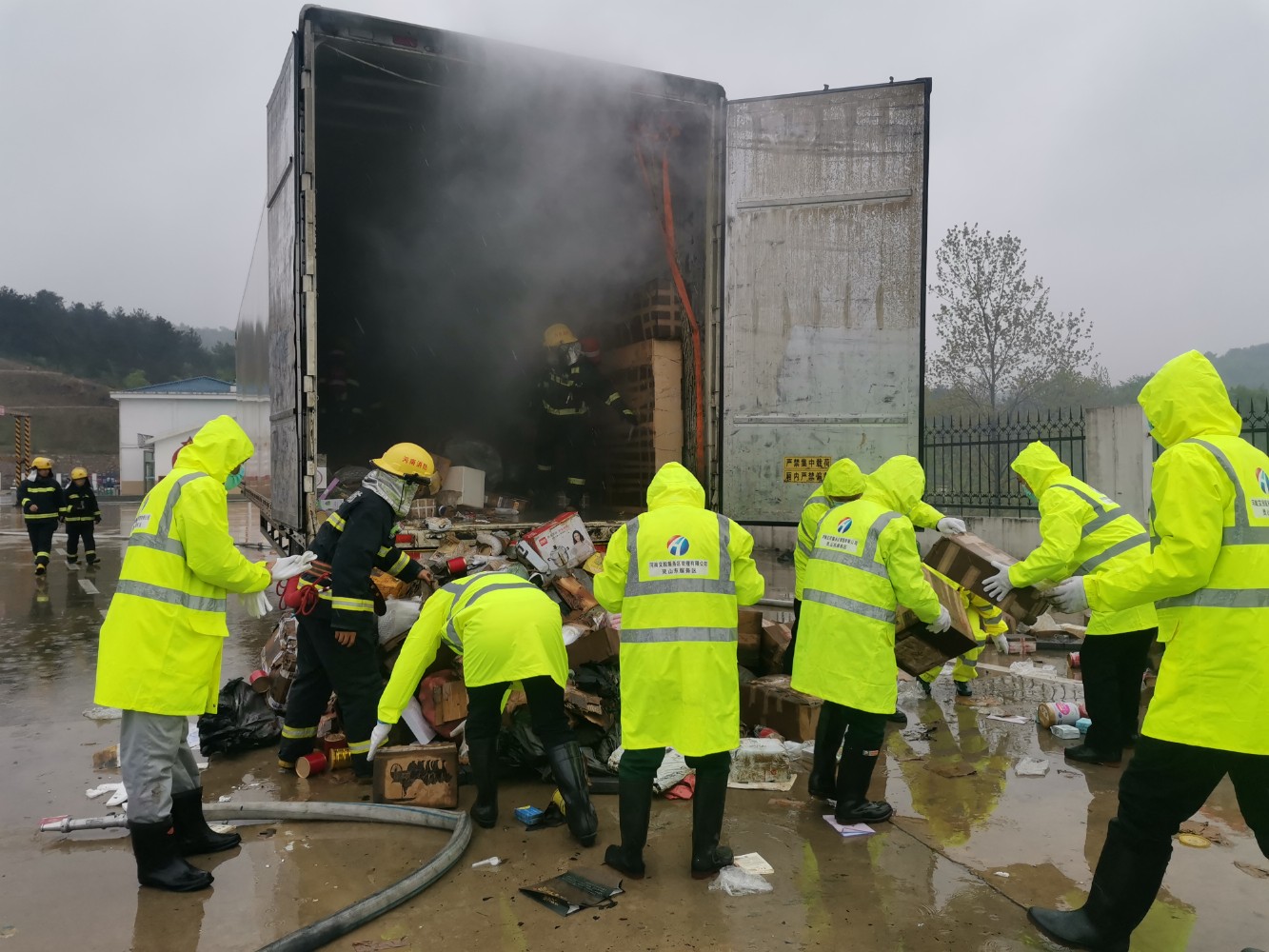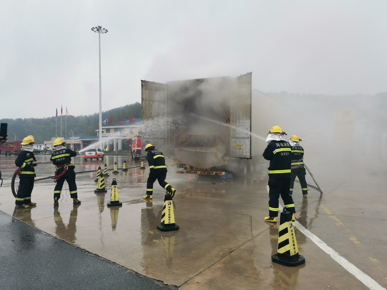 服務區立即啟動應急預案,一是組織應急小組成員快速疏散遇險快遞車輛附近的其他車輛,同時安排相關人員放置交通警示樁隔離起火車輛。二是與駕駛員溝通將車頭與車廂分離。三是安排專人在廣場和下道口處引導車輛避開起火車輛,安全駛入服務區。所有應急處置程序一氣呵成,為救援自燃車輛贏得了寶貴時間。